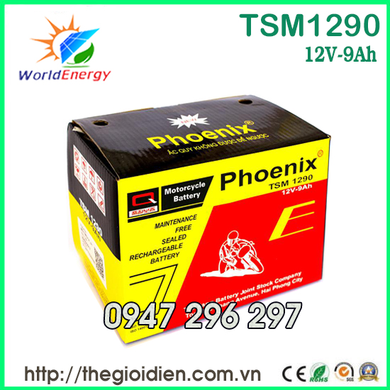BÌNH ẮC QUY XE MÁY PHOENIX 12V-9Ah (TSM1290)