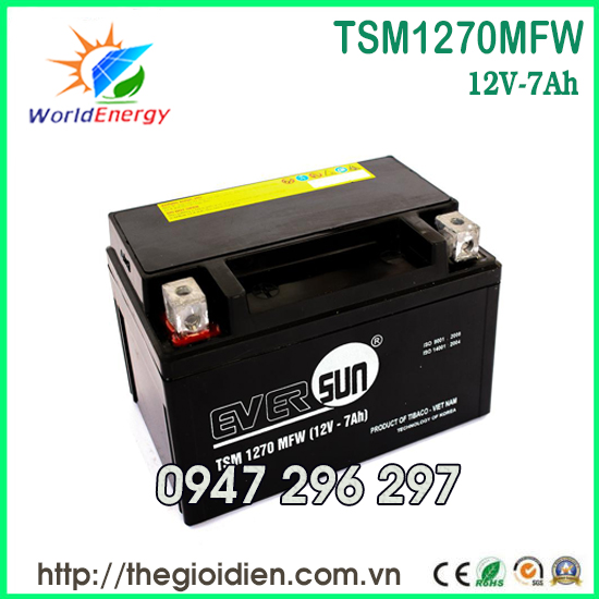 BÌNH ẮC QUY XE MÁY EVERSUN 12V-7Ah (TSM1270MFW)