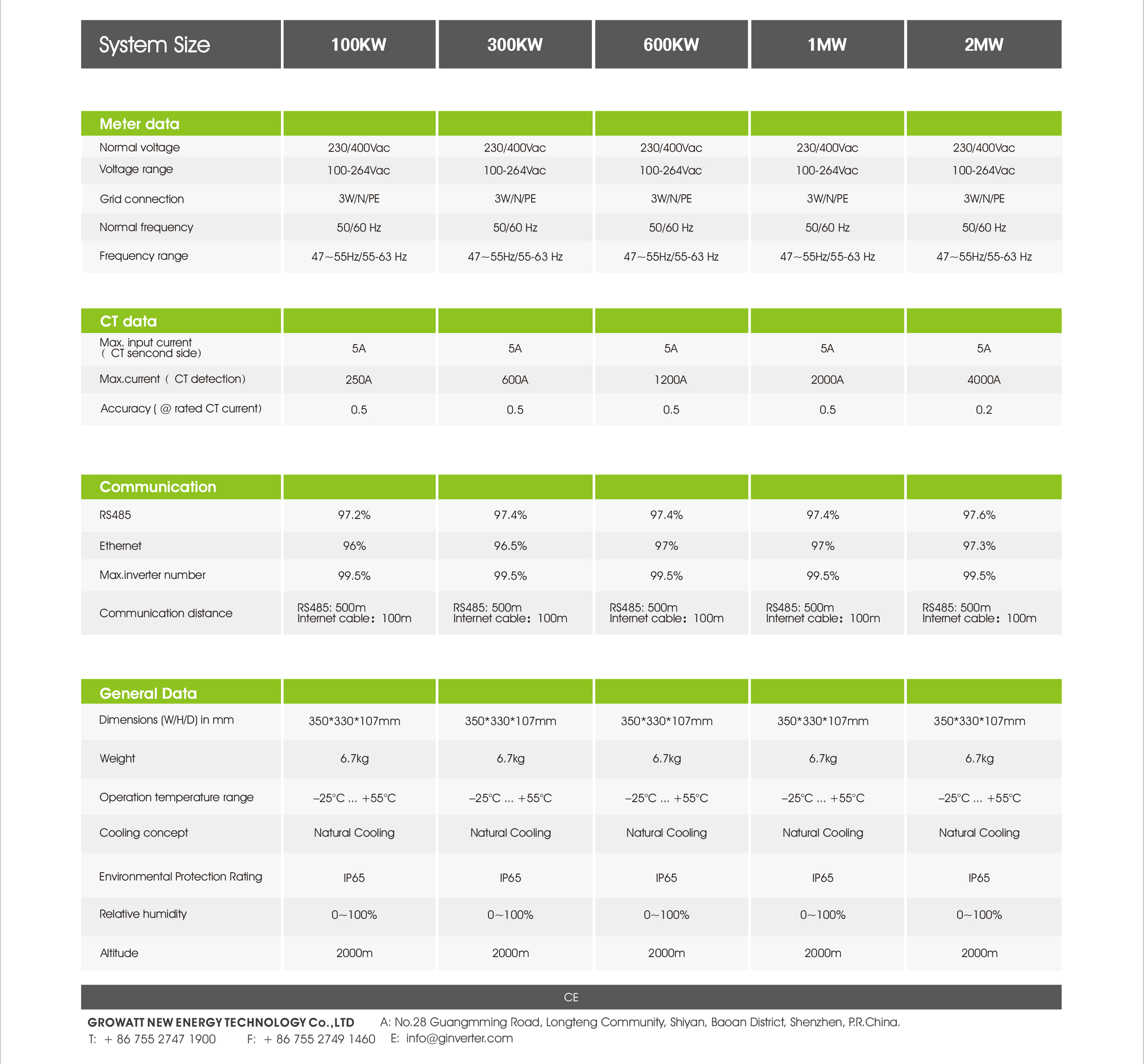 * Thông số kỹ thuật Bộ quản lý bám tải Anti-reflux Controller 1MW Growatt
