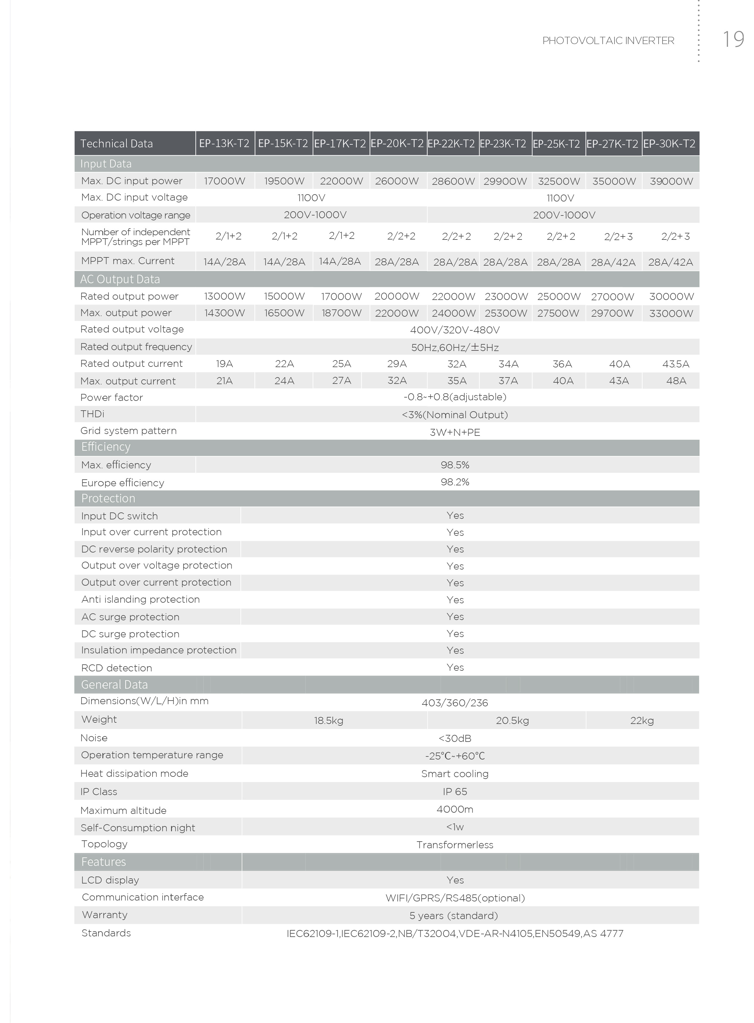 Inverter Hòa Lưới Ecopower 15KW 3 pha (EP-15K-T2) có những tính năng nổi trội sau:
