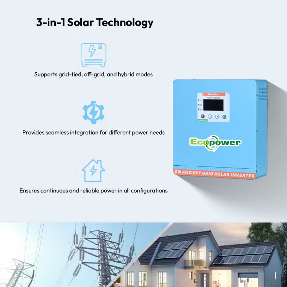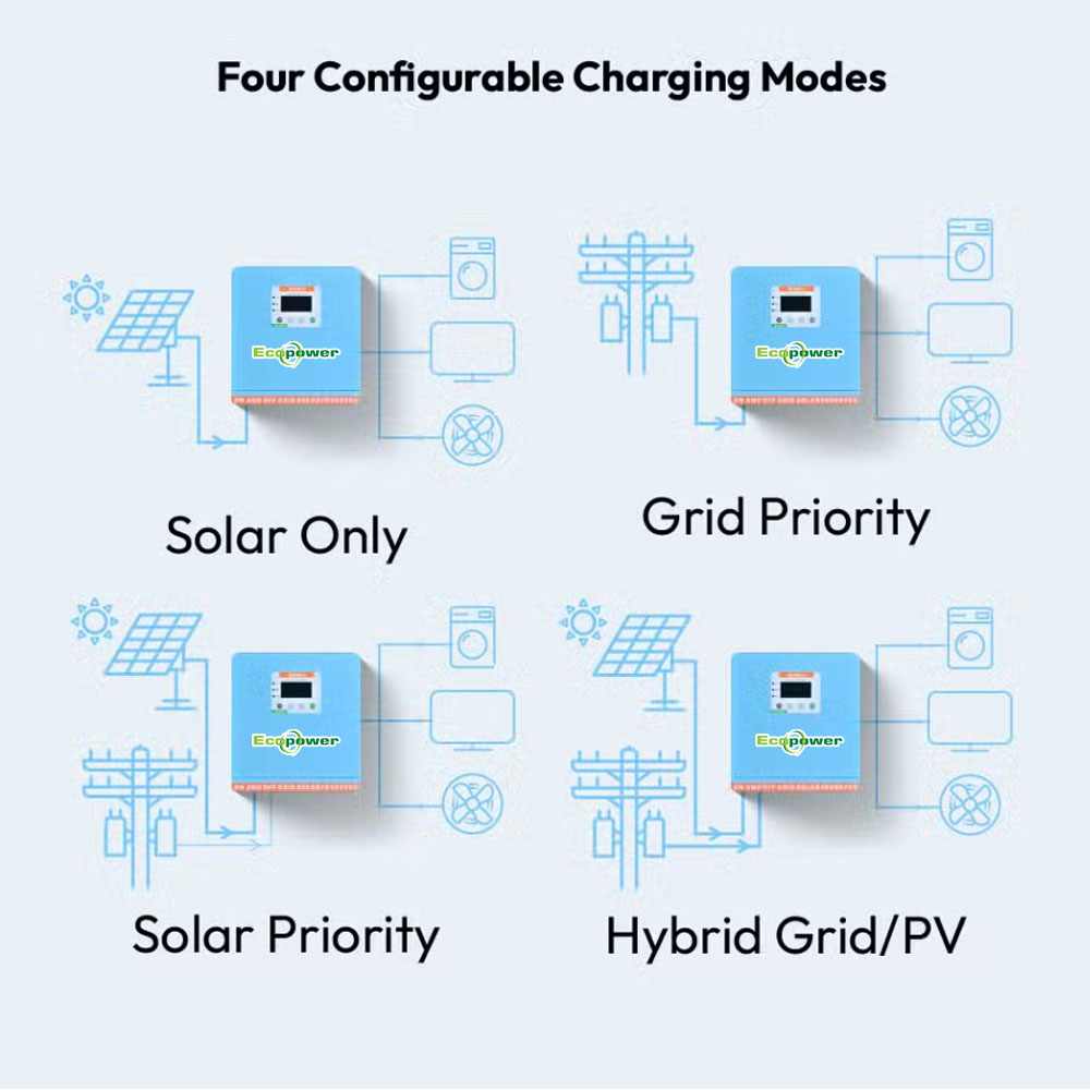 Với bốn chế độ sạc có sẵn—chỉ dùng năng lượng mặt trời, ưu tiên lưới điện, ưu tiên năng lượng mặt trời và sạc kết hợp—bộ biến tần cho phép người dùng kiểm soát hoàn toàn cách họ quản lý mức sử dụng năng lượng và sở thích của mình.