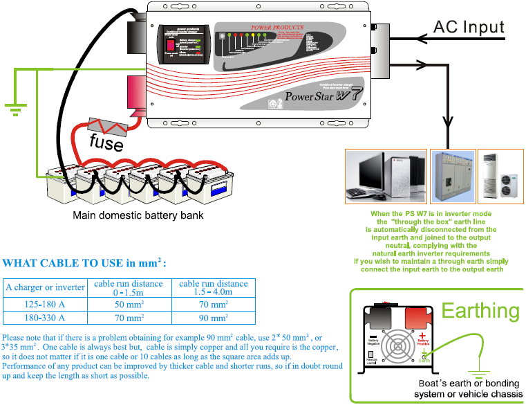 - Chỉ cần bình ắc quy 24Vol, 100Amp hoặc hơn và nối với thiết bị đổi điện Inverter Power W7 là bạn sẽ có nguồn điện để sử dụng các thiết bị điện trong gia đình.