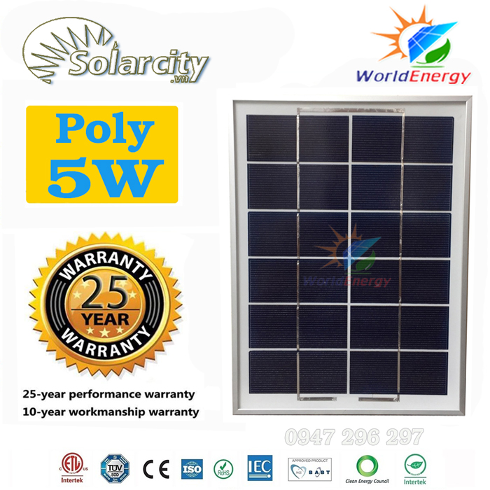 * Thông số kỹ thuật TẤM PIN NĂNG LƯỢNG MẶT TRỜI POLY 5W SOLARCITY