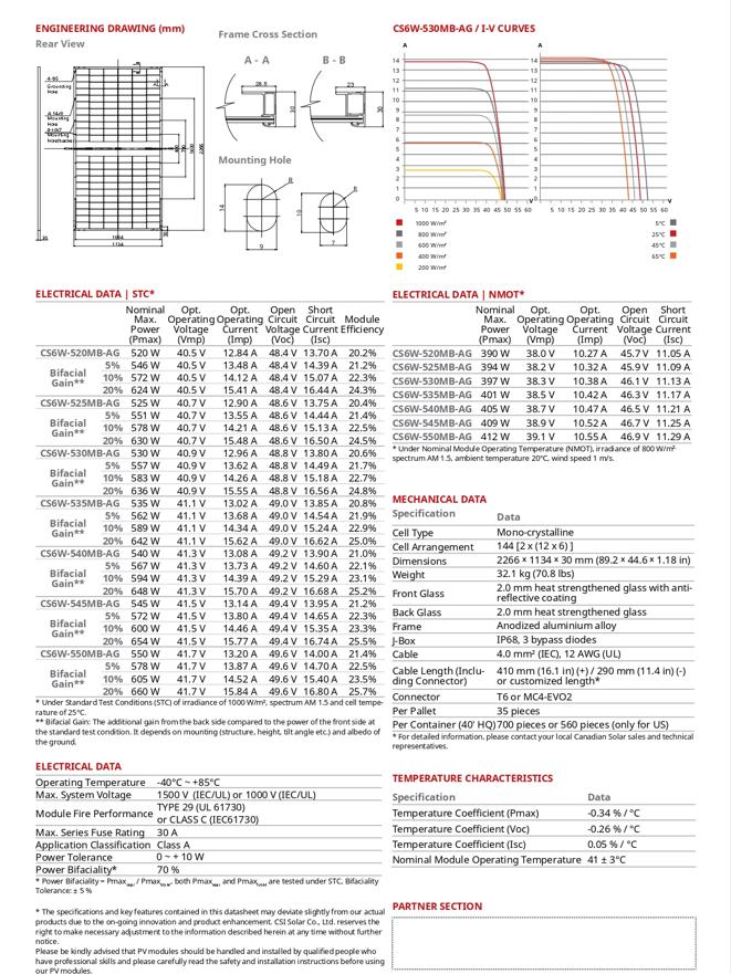 TẤM PIN MẶT TRỜI MONO CANADIAN 550W (CS6W-550MB-AG).
