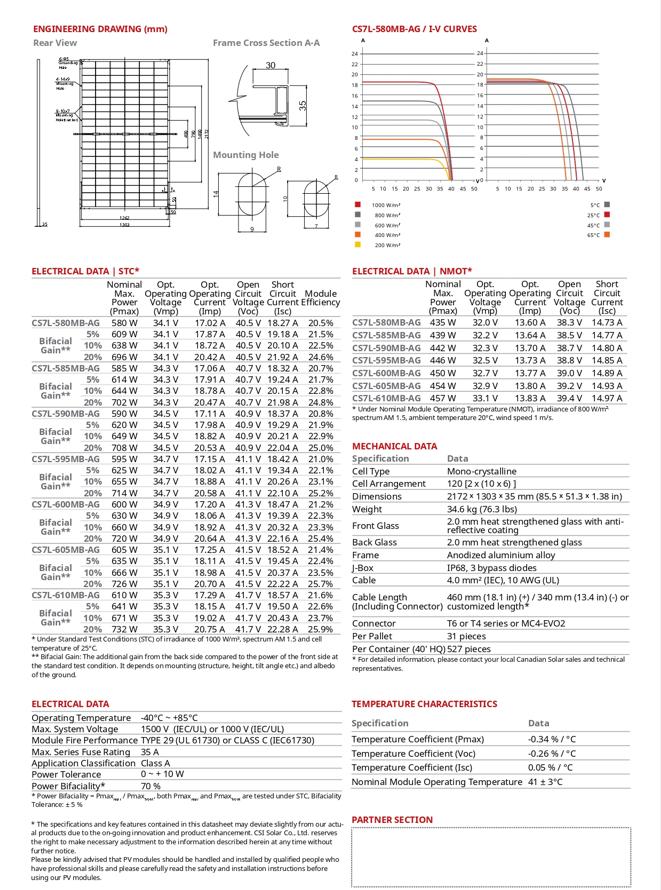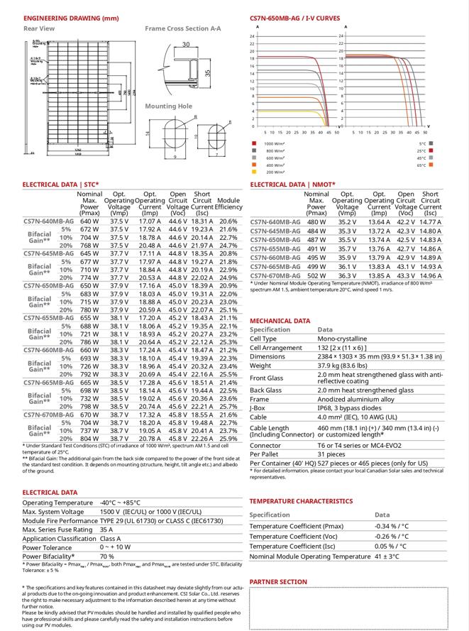 * Thông số kỹ thuật của tấm pin năng lượng mặt trời Canadian Solar 670W (CS7N-670MB-AG)