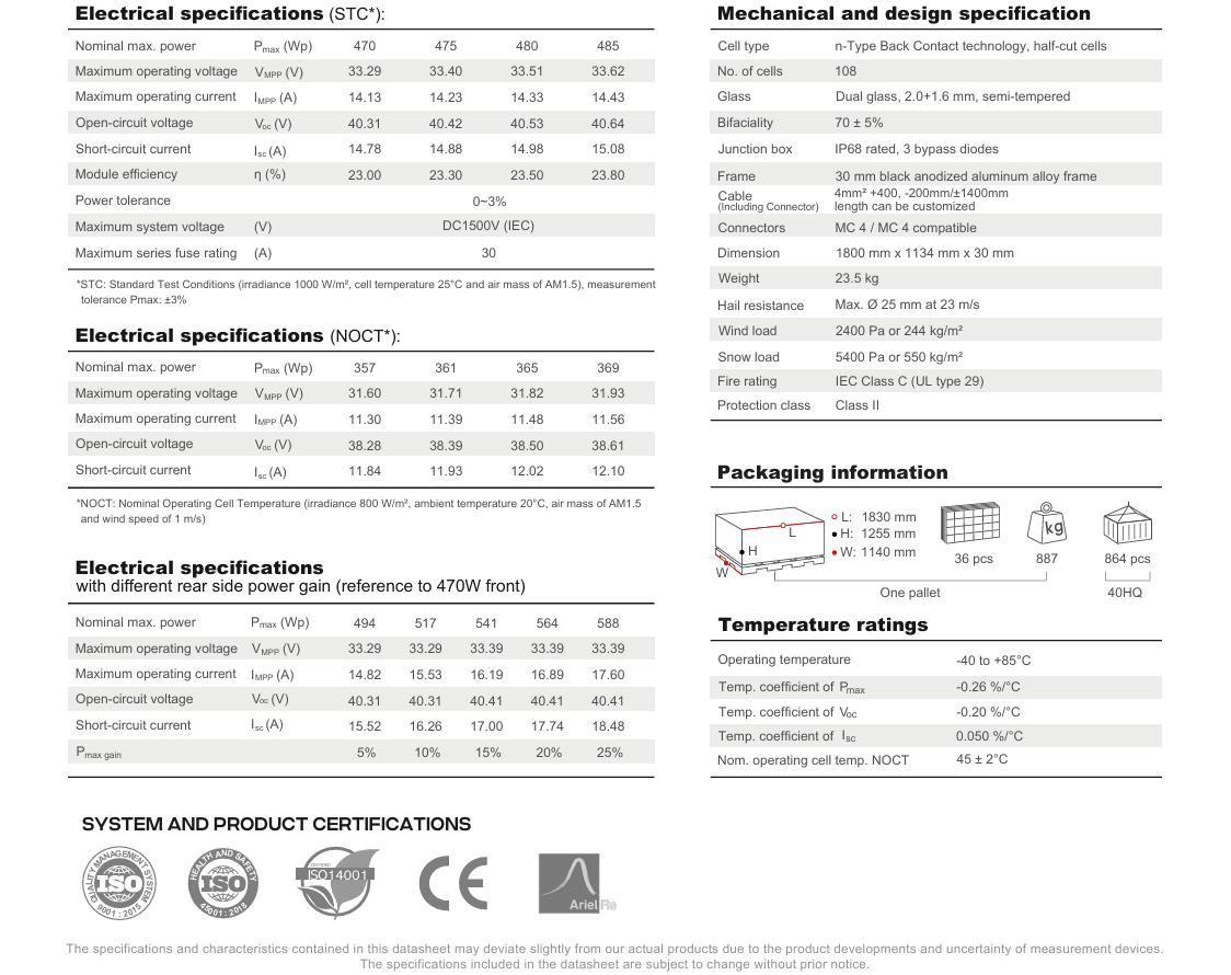 Bảo hành hiệu suất | 30 năm hiệu suất trên 80% |