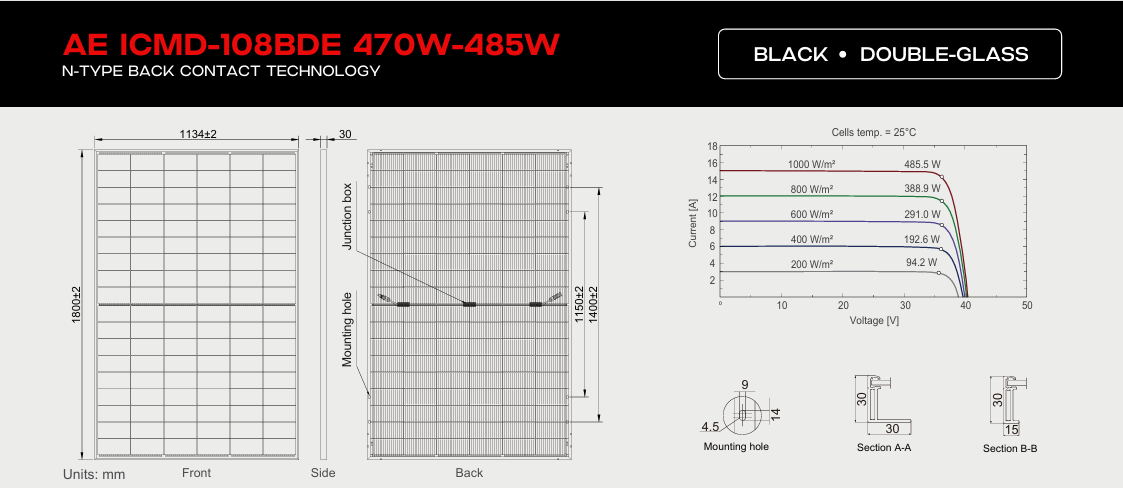 Kích thước tấm pin | 1800 mm x 1134 mm x 30 mm |