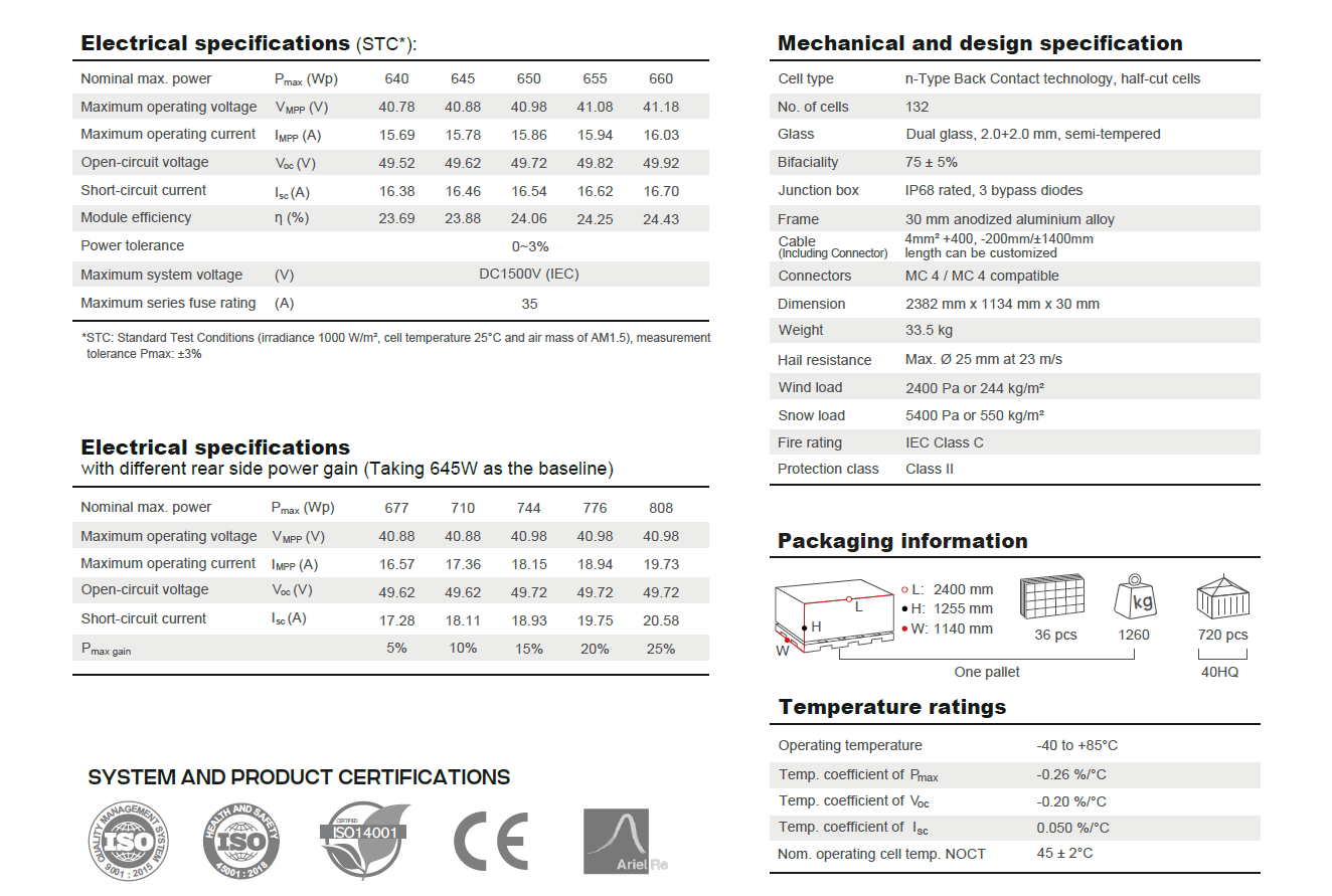 Kích thước tấm pin | 2382 mm x 1134 mm x 30 mm |